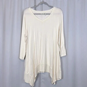 LOGO Lounge Cream Handkerchief Hem V-Neck Top Size L