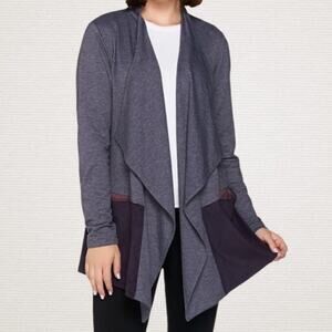 LOGO Lounge French Terry Cardigan Womens Small Purple Faux Suede Casual Layering