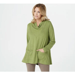 LOGO Lounge Lori Goldstein Top 2XS Black French Terry Cowl Neck