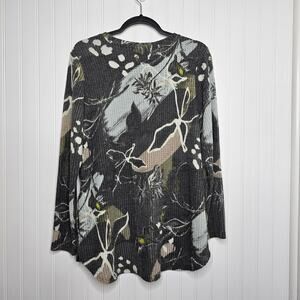 LOGO Lounge Lori Goldstein Womens Cloud Waffle Printed Scoop Neck Top Sz XS Gray