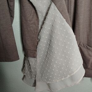 LOGO Lounge Swiss Dot Sheer Trim Tan Open Front Cardigan Women's Size Large
