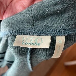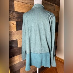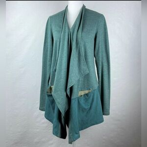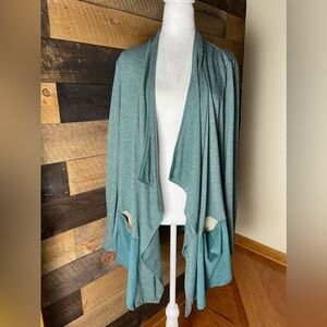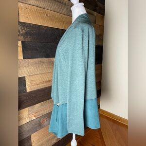 LOGO Lounge Waterfall French Terry Cardigan Faux Suede Hem Pockets Green Sz XL
