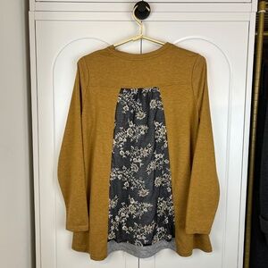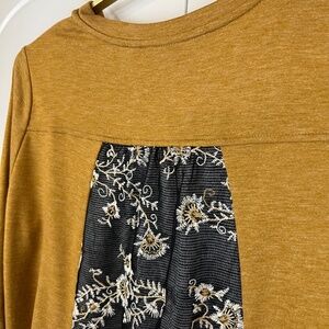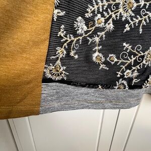 Step into timeless style with this honey-yellow, super soft, long sleeve and floral embroidered tunic top from L.O.G.O (Lori Goldstein) Lounge. One of the softest and coziest tops you've ever felt! Great for fall festival events.