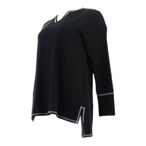 Features: long sleeves, split neckline, high-low bottom hem, contrast coverstitch, two pockets