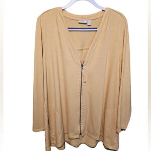 LOGO Lounge by Lori Goldstein Yellow Lace Back Full Zip Sweatshirt