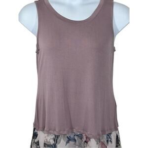 LOGO Mauve Pink Floral Hem Tank Top Size Large | Mixed Media Tunic High Neck