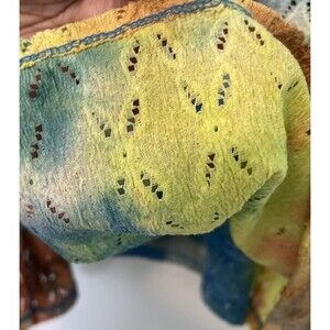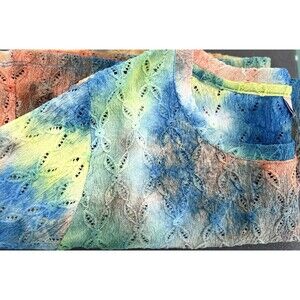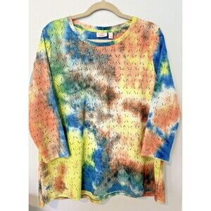 LOGO QVC Knit Eyelet Tie-Dye Top Wild Lime Size M 3/4 Sleeve Stretchy Tee - New