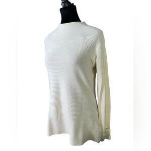 Lightweight, no holes. Some slight staining on collar, see photos. AP to AP is 17”. XXS, cream color.