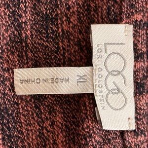 Logo sweater by Lori Goldstein (sz - X-Large). Measurement from underarm to underarm is 23”. Measurement from shoulder to the lowest hemline is 35-1/2”. Fabric content is 95% cotton & 5% cashmere. Please see all pictures.