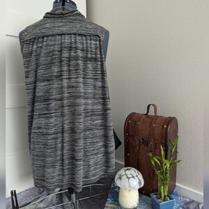 LOGO Brand grey heather drape vest with faux suede trim in a modern design. Perfect for layering. Adds elegance to any outfit. Measurements in pics.