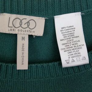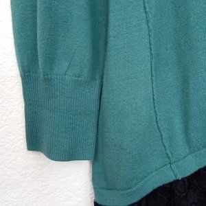 LOGO Sz Medium Green Crew Neck Asymmetrical Lace Hem Sweater
