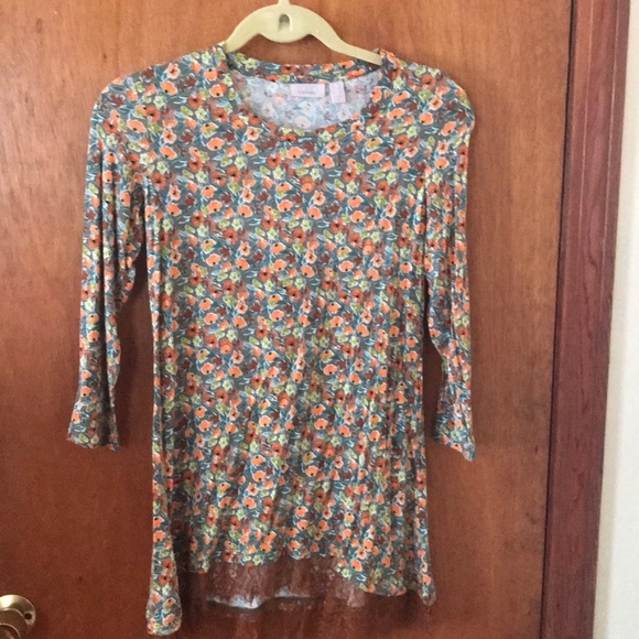 Floral Print Top with Lace Hem