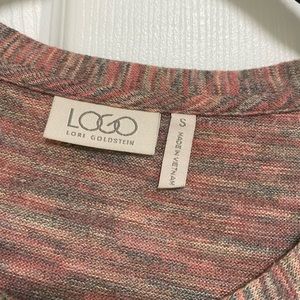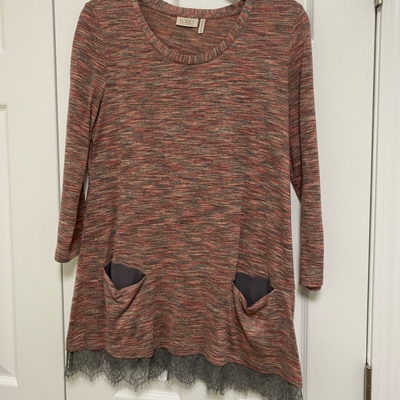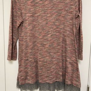 LOGO Lounge from QVC. Size S, marked cotton slub with gray lace ruffle trim. Two pockets on front. EXCELLENT CONDITION