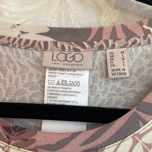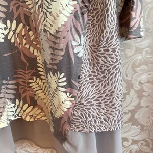 Beautifully feminine! LOGO tunic is gray, violet and ivory.