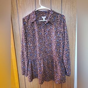 LOGO Tunic Peplum Button Down Top. EUC. Size Small