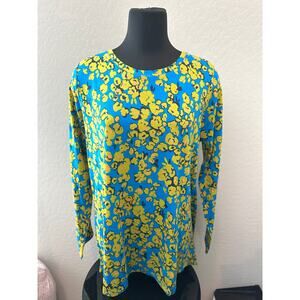 LOGO by LORI GOLDSTEIN | Floral Print Long Sleeve Top Blue Yellow | Size Large