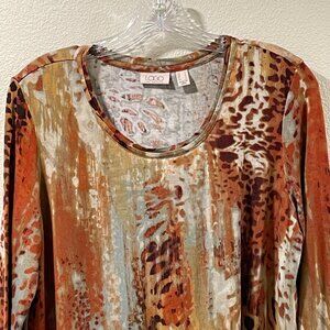 LOGO by LORI GOLDSTEIN Long Sleeve Animal Print Jersey Tunic Ruffle, Rust - M
