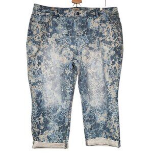LOGO by Lori Goldstein 20W Petite Printed Boyfriend Jeans Blue Combo NWOT