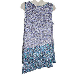 LOGO by Lori Goldstein Allover Mixed Printed Knit Tank Top Asymmetric Hem Large