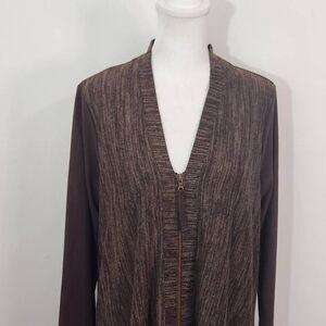 LOGO by Lori Goldstein Brown Zip-Front Cardigan Size Small Brown Cardigan