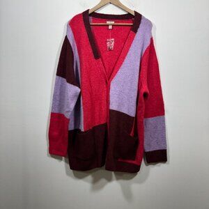 LOGO by Lori Goldstein Button Front Colorblock Cardigan Sweater Size 3X Cozy