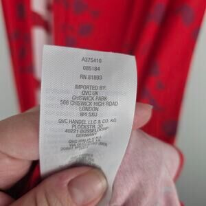 LOGO by Lori Goldstein Cherry Red Floral Short Sleeve Midi Dress White Godet L
