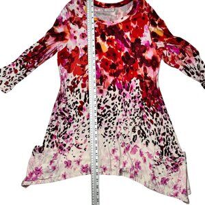 LOGO by Lori Goldstein Colorful Artsy Floral Pattern Side Pockets Tunic Size M