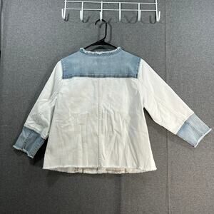 LOGO by Lori Goldstein Cropped Denim Jacket White/Blue Size Reg 8