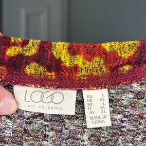 LOGO by Lori Goldstein Duster Cardigan Women's L Red Gold Buttons Long Sleeve