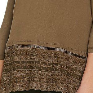 Top Features: scoop neckline, 3/4-length sleeves, front and back embroidery at hem, split back