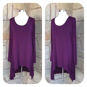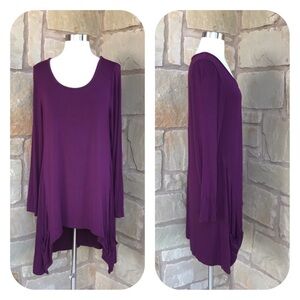 LOGO by Lori Goldstein Purple Petite Hi-Low Hem Tunic w/ Pockets