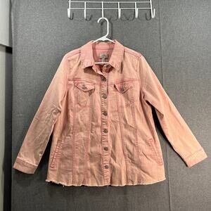 LOGO by Lori Goldstein Jeans Jacket Womens Size 14 Orange with Frayed Hem