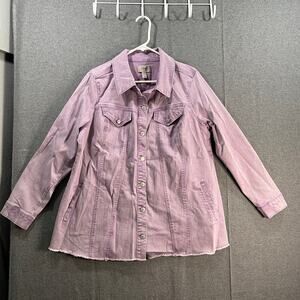 LOGO by Lori Goldstein Jeans Jacket Womens Size 18W Purple Color with Frayed Hem