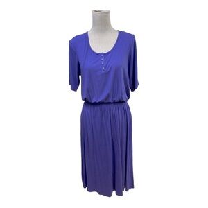 LOGO by Lori Goldstein Knit Maxi Dress Sz M Purple Short Sleeve 4 Button Long