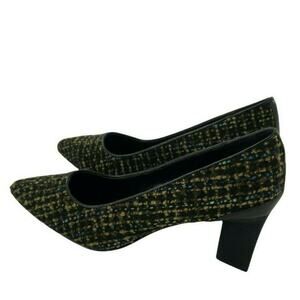LOGO by Lori Goldstein Liza Shoes Women's Size 7.5 Pointed Toe Block Heel Leather Tweed