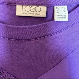 LOGO by Lori Goldstein Purple Short Sleeve High Low Lace Accent Top Sz.XS