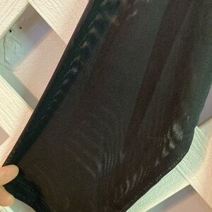 LOGO by Lori Goldstein Rayon 230 Top with Mesh 3/4 Length Sleeves Black Medium