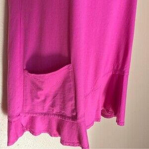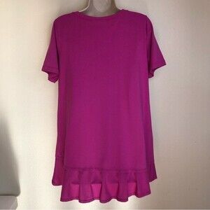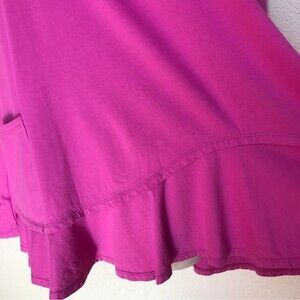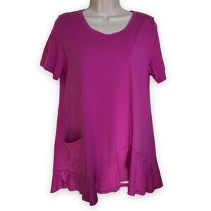 LOGO by Lori Goldstein Short Sleeve Gathered Flounce Hem Pink Shirt Women Medium