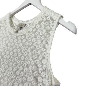 LOGO by Lori Goldstein Sleeveless Lace Peplum Tank Top White Daisy Floral Size M