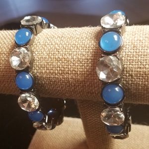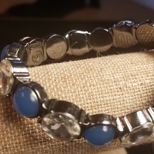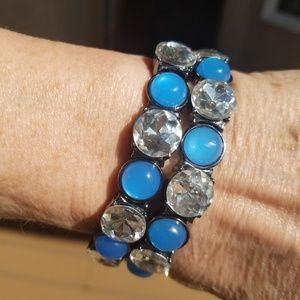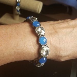 A must have to go with you blue outfits. Pretty bubble stretch design bracelet has blue moonstone faceted cabochons and round glass stones.