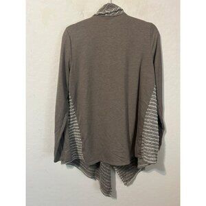 LOGO by Lori Goldstein Sz M Taupe Cream Tunic Open Front Cardigan Cozy