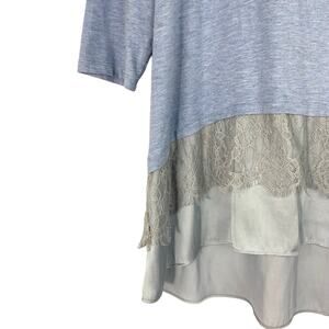 LOGO by Lori Goldstein Lagenlook tunic top with subtle high low lace hem.