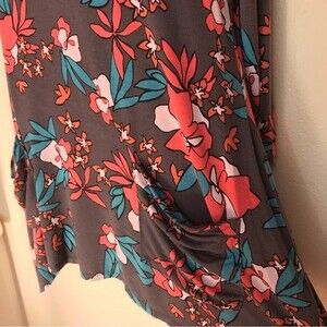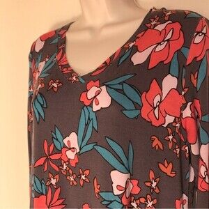 LOGO by Lori Goldstein V Neck 3/4 Sleeve Sharkbite Hem Gray Floral Tunic Medium