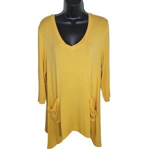 Excellent pre owned condition. LOGO by Lori Goldstein V-neck Tee with 3/4 Sleeves slouch Pocket Detail medium.