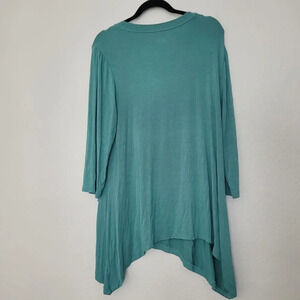 LOGO by Lori Goldstein Womens Blouse Top L Green Rayon Long Sleeves Lagenlook
