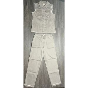 LOGO by Lori Goldstein Women's Denim Gray Distressed Vest & Boyfriend Jeans