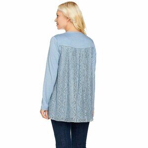 LOGO Lounge by Lori Goldstein Size XL Beige Zip Front Cardigan Sweater with Lace Back