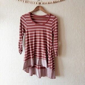 LOGO by Lori Goldstein tunic rust colored stripe 3/4 sleeve Sz XS