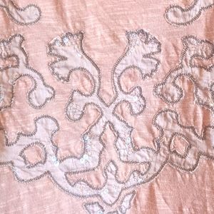 Gently used 3/4 sleeve top with beautiful stitched design and tasteful sequins gives this shirt pizzazz without going over the top. Great for fall.