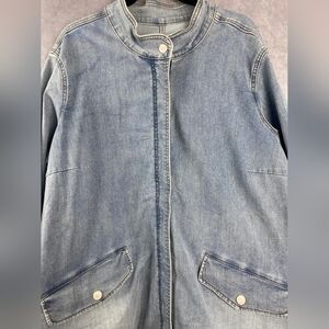 LOGO women's size 26W light wash blue jean denim mock neck zip up jacket QVC